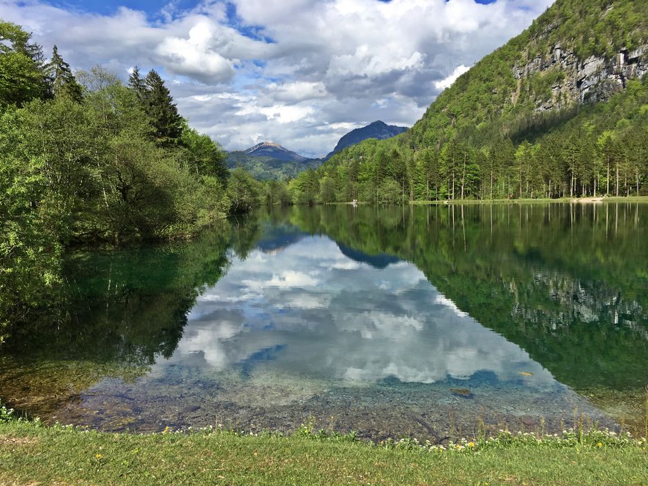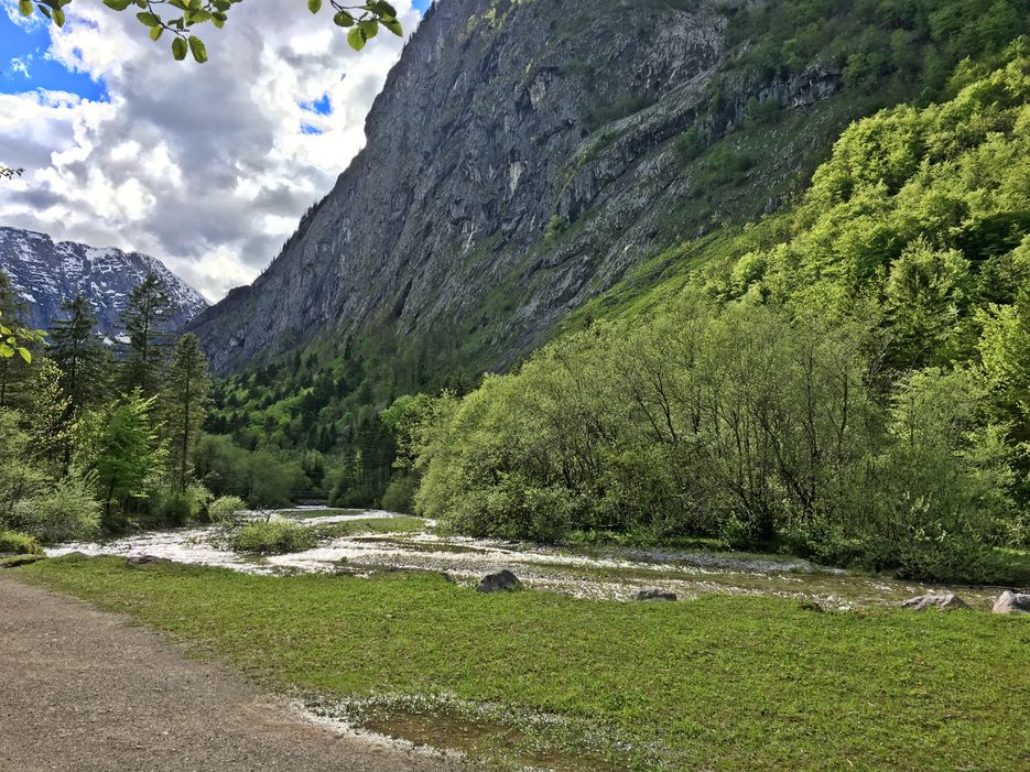 The crystal-clear water of the Torrener Ache meanders through the valley and impressively reflects the surrounding mountains. Brown trout make their circles in the deep green lakes - a fascinating natural spectacle that captivates visitors.